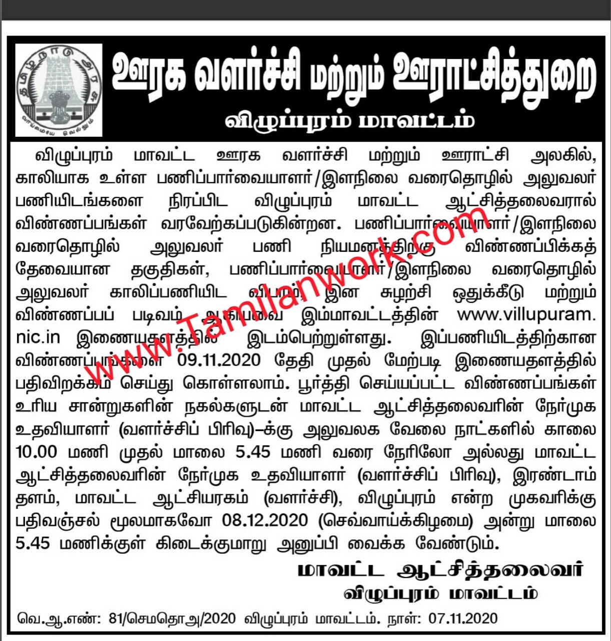 TNRD Viluppuram Recruitment 2020 Inspiring Overseer Posts