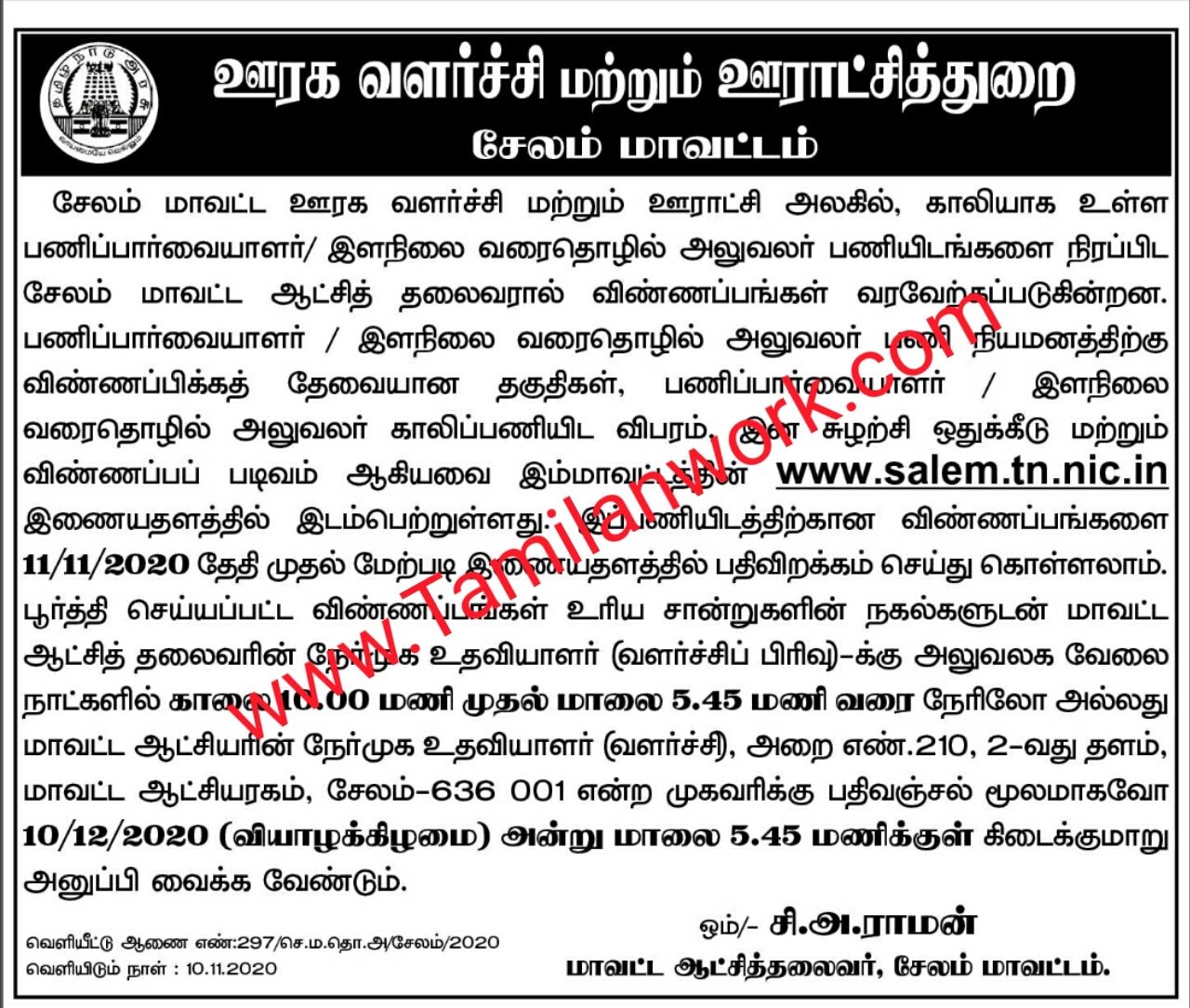 TNRD Salem Recruitment 2020 Inspiring 16 Overseer posts