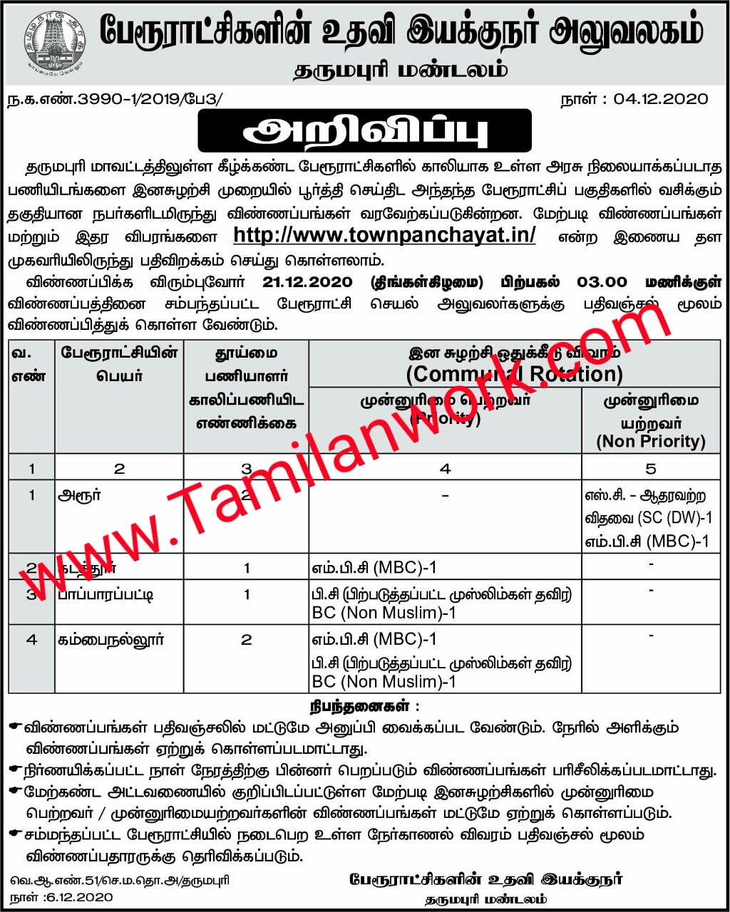 Dharmapuri District Govt Jobs 2020 Skill Sanitary Worker Posts