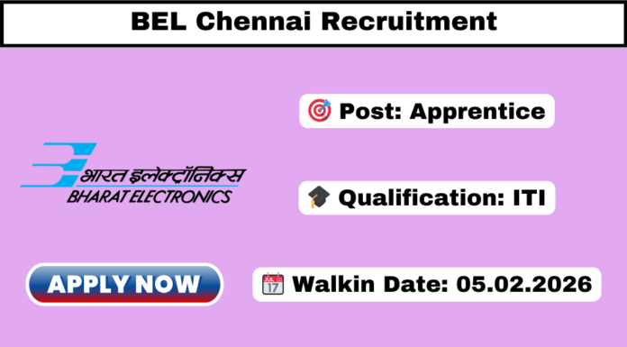BEL Chennai Recruitment 2026: Bharat Electronics Limited has recently announced the latest recruitment for Apprentice posts. Eligible candidates are required to attend walk-in selection interviews scheduled from 05 February 2026 to 07 February 2026. Applications are accepted in offline mode only.