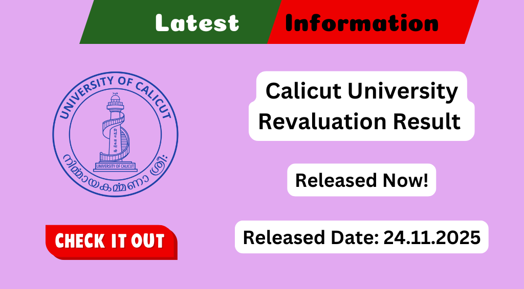 Calicut University Revaluation Result 2025:The University of Calicut on Nov 24th, 2025 released results for Calicut University UG PG Revaluation Results. The results are available at www.results.uoc.ac.in Result. To verify the result, candidates must enter their Calicut University UG Revaluation Result. www.results.uoc.ac.in result 2025, Following its announcement, we will provide you with a direct link to the conclusion below.
