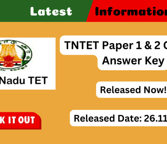TNTET Paper 1 & 2 Official Answer Key Released at trb.tn.gov.in