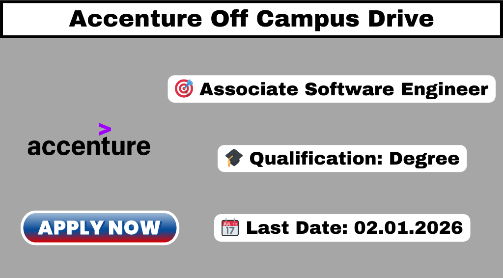 Chennai Accenture Off Campus Drive 2026: Chennai Accenture has recently announced the latest recruitment for the Associate Software Engineer Posts. This Chennai Accenture notification 2026 will be available on the official website from 30.12.2025.
