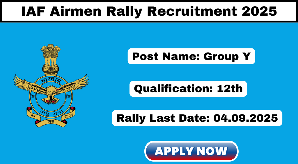 IAF Airmen Rally Recruitment 2025: Indian Air Force has invited male candidates (Indian / Gorkha of Nepal) to participate in the recruitment rally for Airmen in Group ‘Y’ (Non-Technical) – Medical Assistant Trade. The rally will be held from 27th August 2025 to 4th September 2025 at 4 Airmen Selection Centre, Barrackpore, West Bengal.