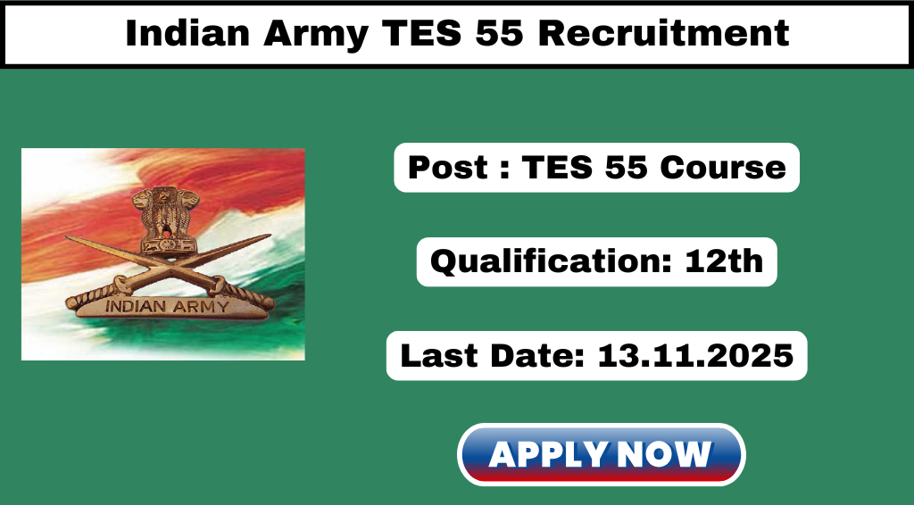 Indian Army TES 55 Recruitment 2025 | Posts: 10+2 TES 55 course | Indian Army TES 55 Notification 2025 | Indian Army Recruitment 2025 | Last Date: 13.11.2025 @ joinindianarmy.nic.in TES 55 Recruitment 2025